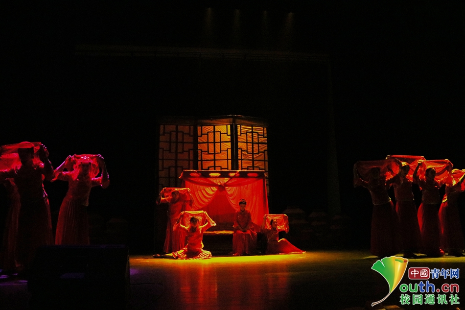 舞蹈与音乐相配合,昏黄的灯光预示了女主角的不幸遭遇。 中国青年网通讯员 冉旭 摄