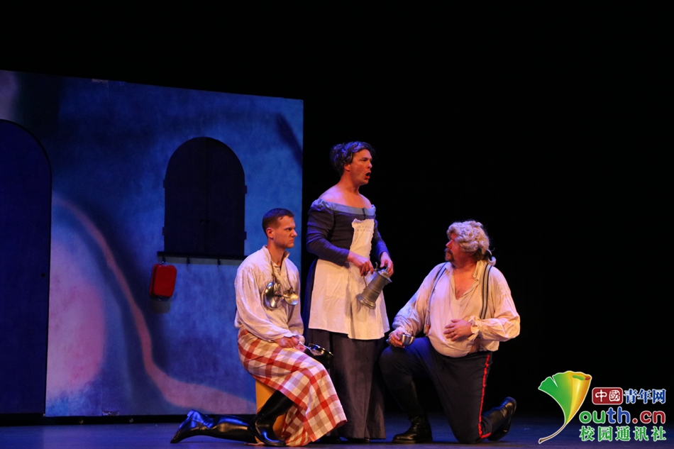 寄生在奥丽维亚家的小丑、安德鲁与托比三人深夜在花园里聚会,大声唱歌,引来了管家马伏里奥的斥责。由于马伏里奥长期以来的傲慢引来了众人的方案,他们决心照奥丽维亚的字迹写一封情书,对他进行恶作剧。 中国青年网通讯员 刘世兰 摄