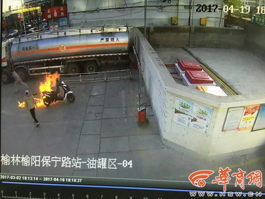 4月19日18时10分左右,武警陕西总队陕西榆林支队勤务中队战士齐宝秦、杨洲外出加油,就在准备离开时,突然听见有人惊慌喊叫“着火了!着火了!”一辆停放在加油站院内的摩托及倾泻在地面上的大量汽油起火,现场一片慌乱。