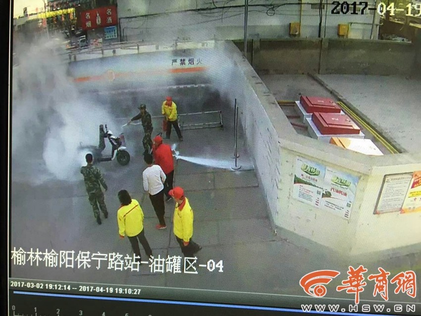 正在付费区的战士齐宝秦火速抓起身旁的干粉灭火器,已经准备开车的杨洲赶忙下车从后备箱取出灭火器,二人从两个方向直奔着火点进行扑救,仅用一分钟就将火焰全部扑灭。从发现火情到成功扑灭,整个过程用时不过两分钟。火扑灭后,两名战士一起默默离开了现场。