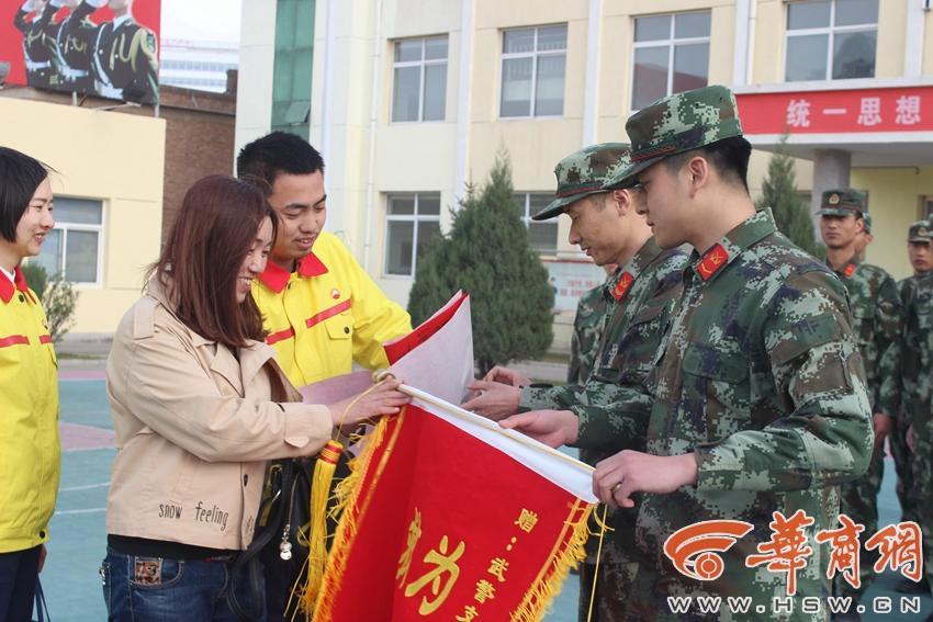 4月20日下午,武警榆林支队官兵正在训练时,加油站的两名工作人员及一名学生家长走进支队营区,将绣有“救火英雄、为民除灾”字样的锦旗和一封感谢信,送到齐宝秦、杨洲的手中,并连声道谢。