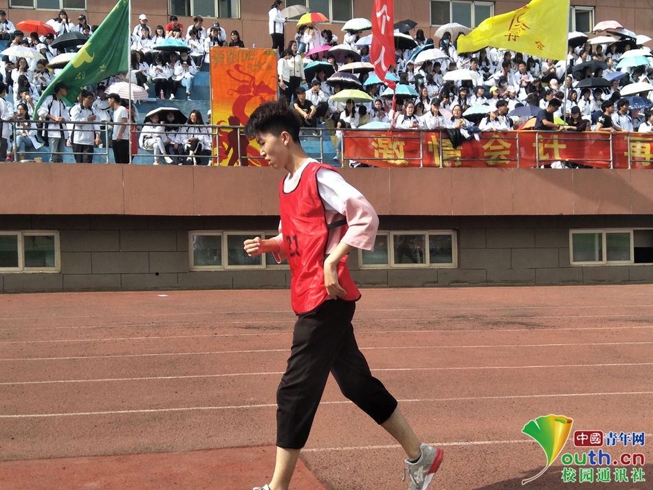 5000米的路程并不算远,只因勇气与毅力与你并存。图为男子跑步中途脚扭伤,面色苍白、身疲力竭,仍在坚持。中国青年网通讯员 贾锦 提供