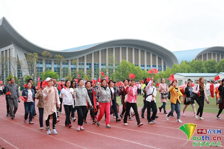 09 教育科学学院的老师们器宇轩昂的也加入到开幕式的方阵队中来,他们用行动告诉我们:生命不息,运动不止。中国青年网通讯员 王小珍 提供