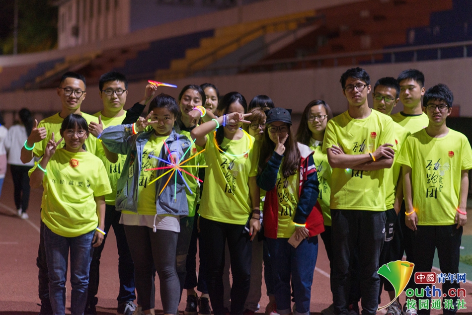11 结束夜跑的同学们展示手中的荧光棒。中南财经政法大学团委 路恒超 供图