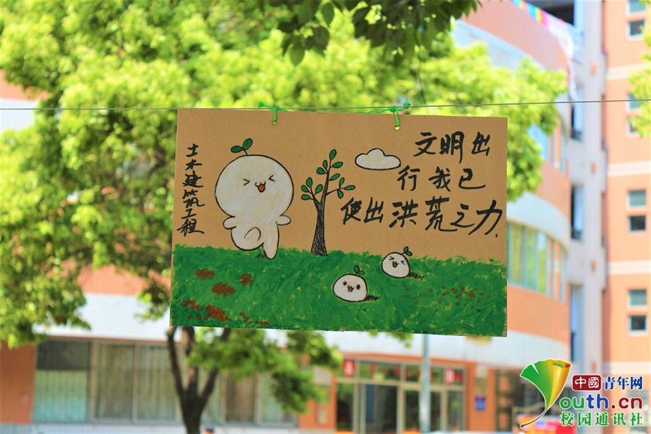 图为“小可爱已为文明出行使出洪荒之力“现场,说明大家都在生活中努力践行文明,全面文明的时代很快便会来临的道理。 中国青年网通讯员 王乾任 摄