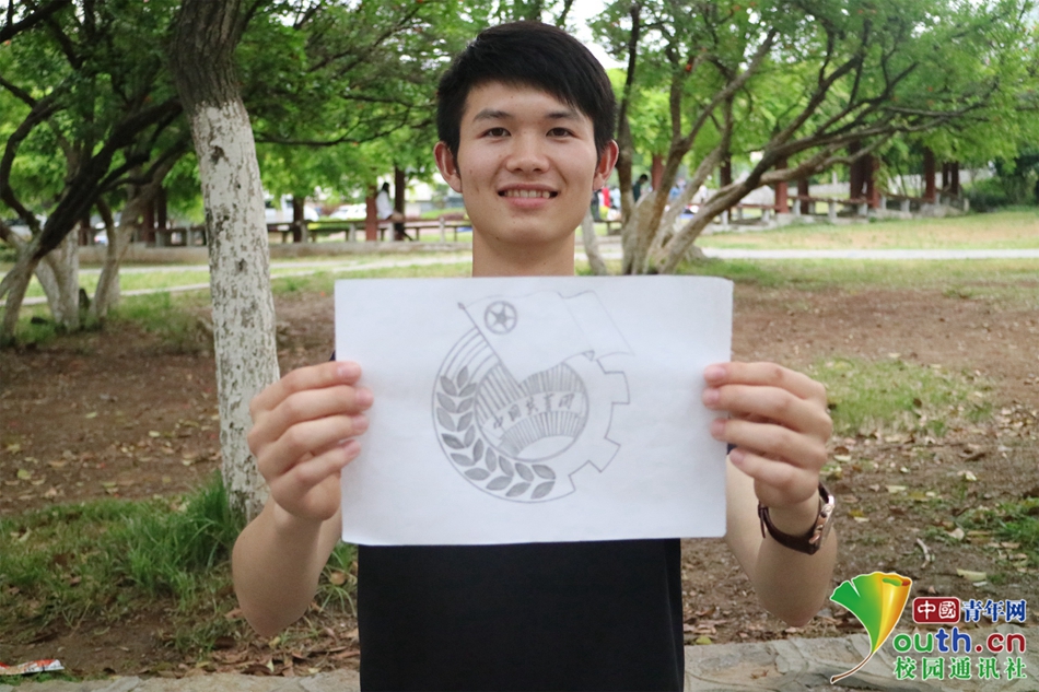 拿着白纸上的手绘团徽,共青团员脸上洋溢着骄傲和喜悦。中国青年网通讯员 钱程 摄