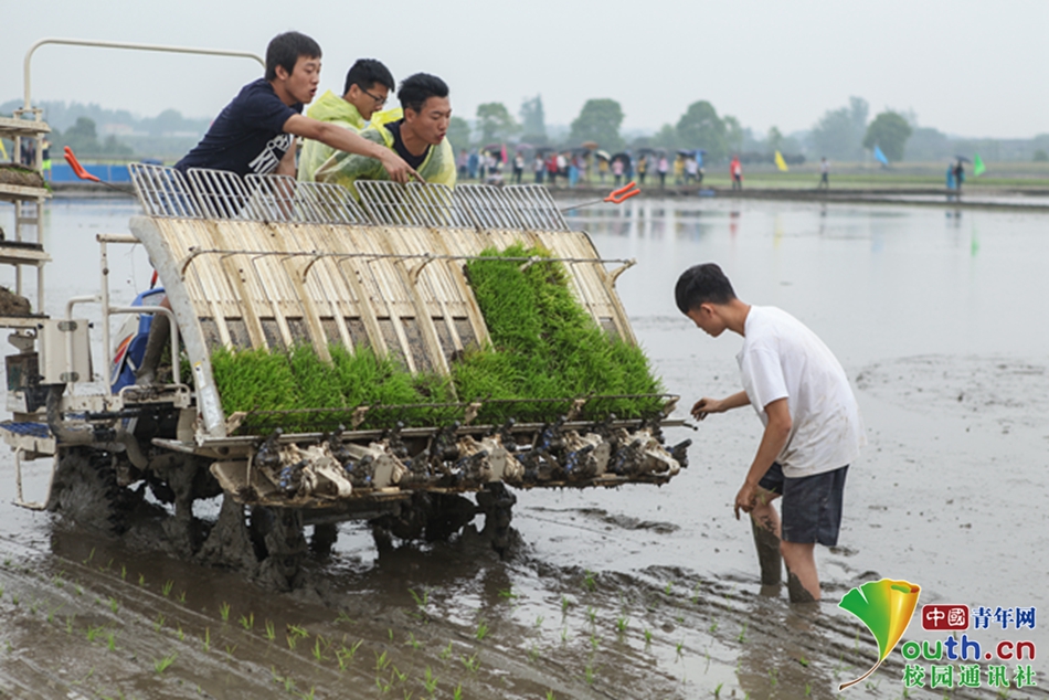 04 “机插秧”学生团体组正在进行比赛。中国青年网通讯员 田野 摄