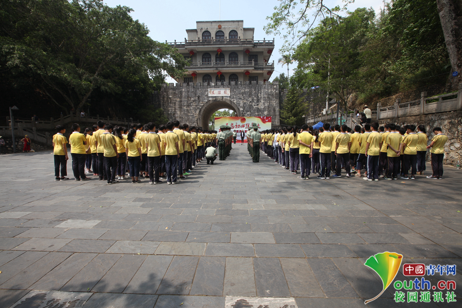 08 300多名中学生迎着鲜红的团旗,在庄严而古老的关楼下宣誓:我志愿加入中国共产主义青年团……50余名青年官兵、干部也共同重温入团誓词,你是否和我一样,心潮依然澎湃。中国青年网通讯员 欧阳青玉 摄