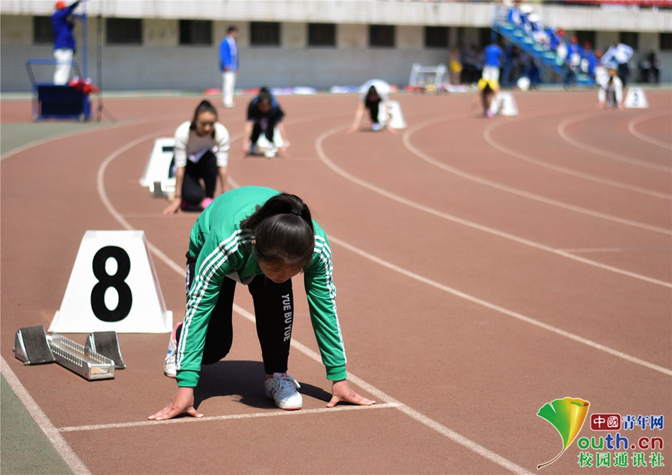 05 蓄势待发,巾帼不让须眉,下一秒红色跑道上的你便与风并肩前行。中国青年网通讯员 刘子煜 摄