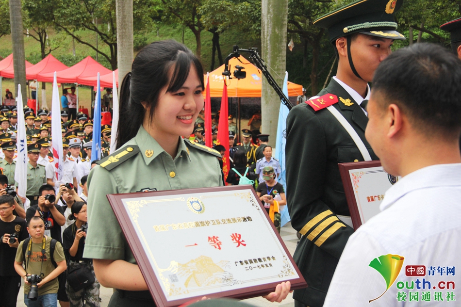 广东医科大学国旗护卫队于本次首届广东省国旗护卫队交流展示活动中荣获团体总分第一名、十佳擎旗手、十佳护旗手、十佳指挥手、十佳方阵奖项。 中国青年网通讯员 王诗莹 提供