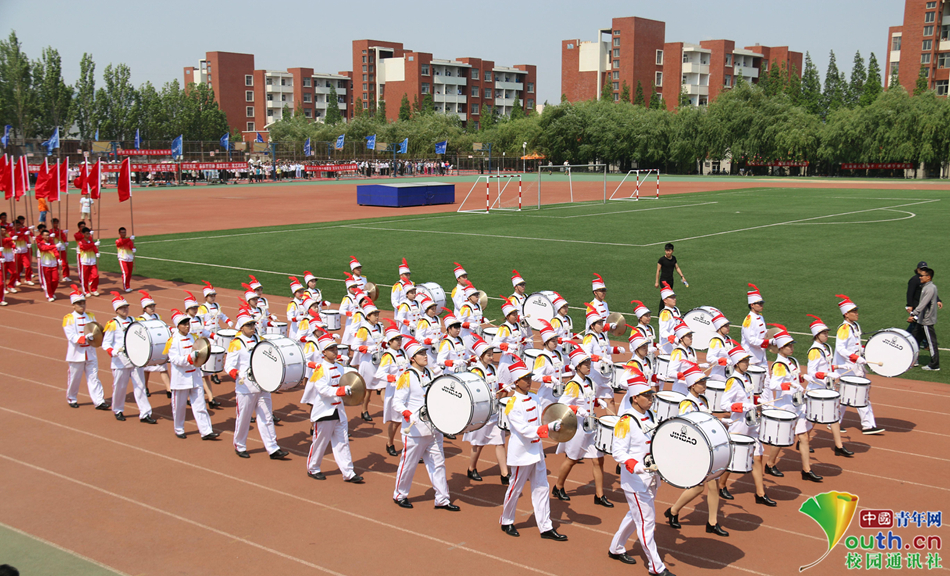 04 开幕式现场,鼓乐队入场。山东科技大学鼓乐队由在校大学生志愿者组成,在学校重大活动中表现抢眼。中国青年网通讯员 信永华 提供