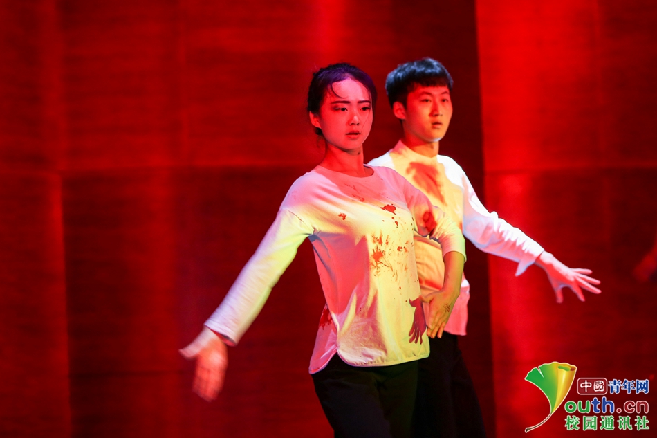 13 在战争主题的舞蹈中,演员的眼神中传递出对敌人的愤慨。中国青年网通讯员 于乐瀛 摄