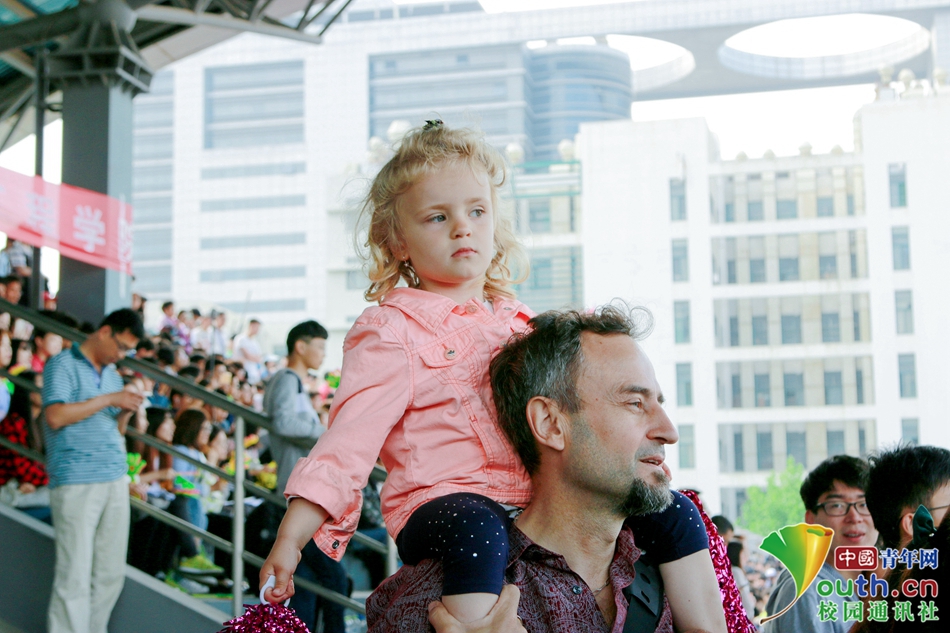 外国父亲带着自己的女儿一同观看比赛。中国青年网通讯员 卢赟 摄