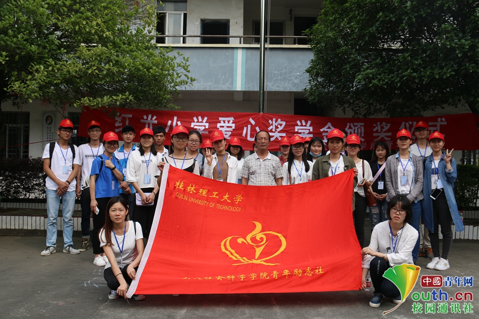 活动结束后,桂林理工大学人文社会科学学院青年励志社到来的志愿者、老师和红光小学老师进行最后合影留念。中国青年网通讯员 韦继添 提供