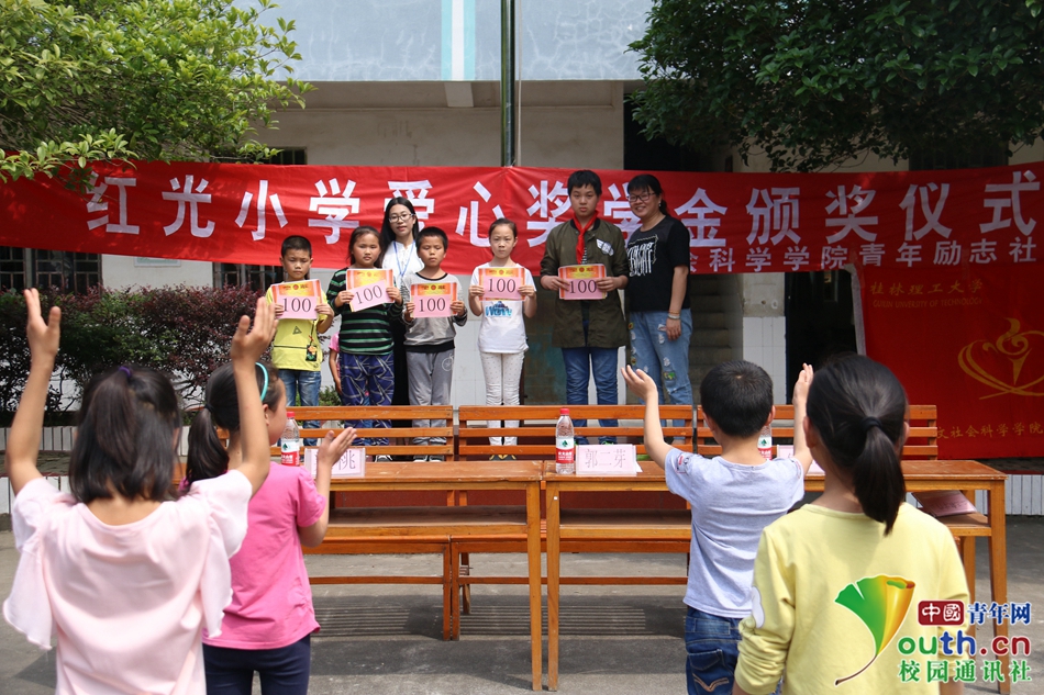 志愿者、颁奖老师和获奖学生合影。中国青年网通讯员 韦继添 提供