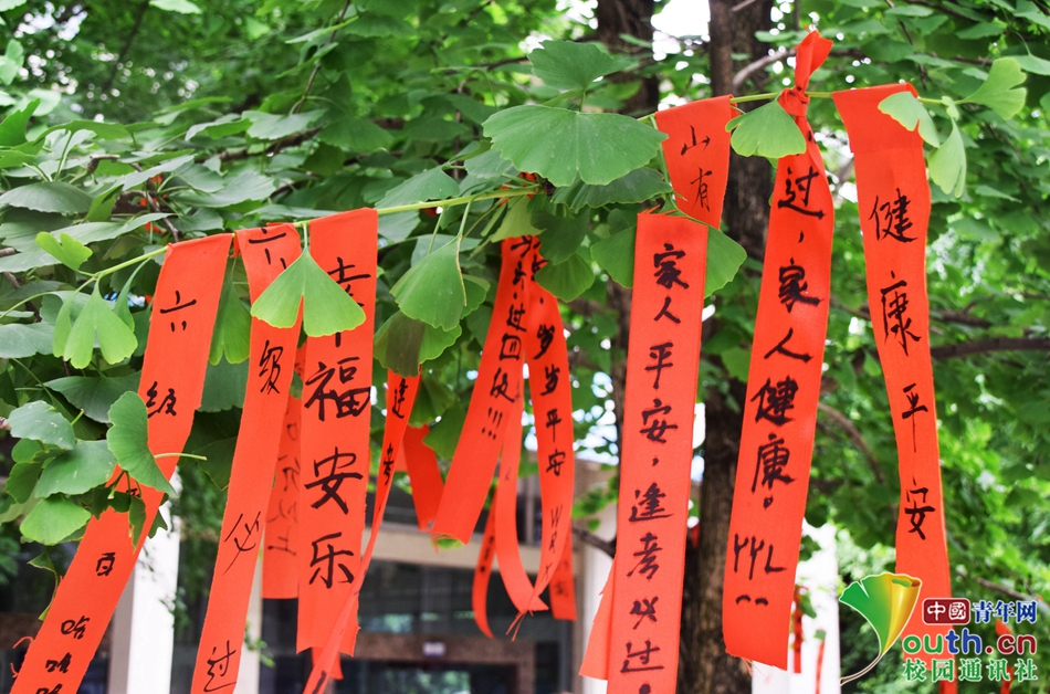 09 银杏的枝头系着红纸条,有关家人,有关学习,有关前程……无论能不能实现,在传统佳节里有了传统的方式做祈福,这是一种传统的延续。 中国青年网通讯员 李佳 摄