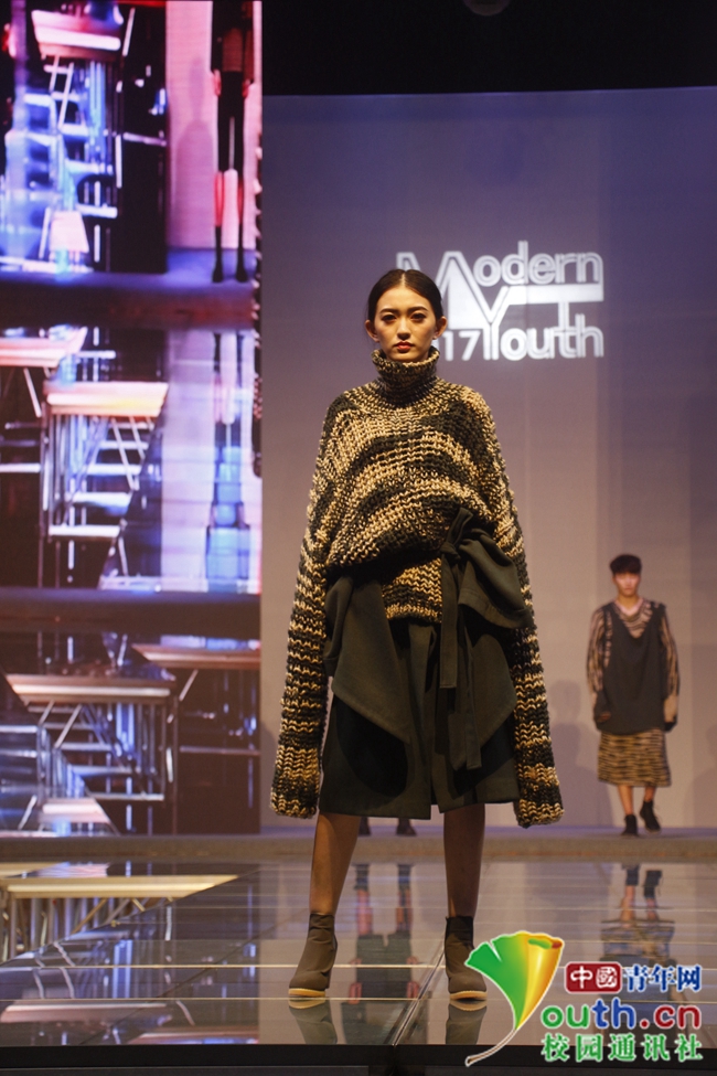 02 设计师刘阿会的《死亡与生长》系列,将绿洲和沙漠的意向组合在一起,将绿的生命力在色彩对撞中展现出极致。中国青年网通讯员 雷开锋 摄