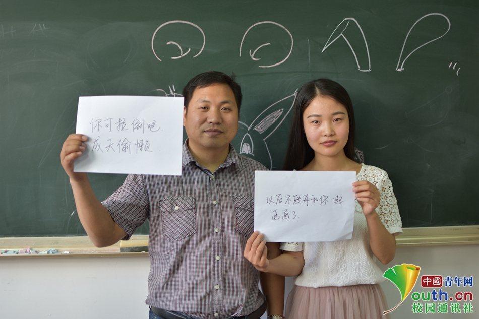 04 学生说:“以后不能在和你一起画画了。” 老师说:“你可拉倒吧,成天偷懒。”中国青年网通讯员 尹博 摄