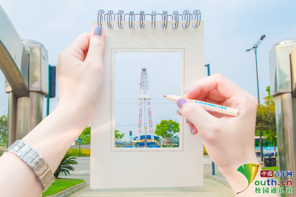 05 西南石油大学南门的“三期井架”雄伟矗立,它见证了一届届学子的离开和到来。中国青年网通讯员 吴晓璇 摄