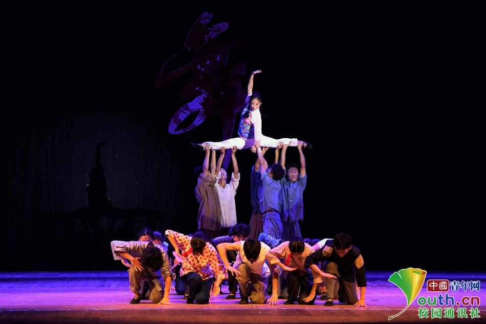 经济学院《高粱红了》演绎了战火纷飞年代的奢侈爱情。中国青年网通讯员 周晗逸 提供