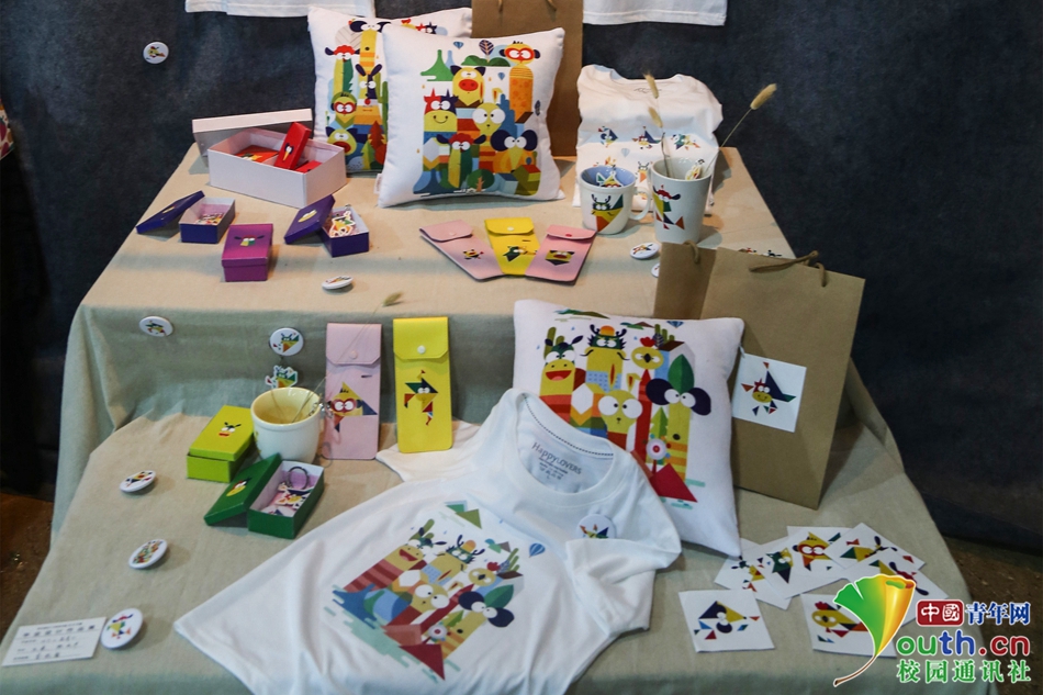 作品《十二生肖》是以生肖为主题的一系列生活用品:T恤、水杯等等。中国青年网通讯员 孙钰林 摄