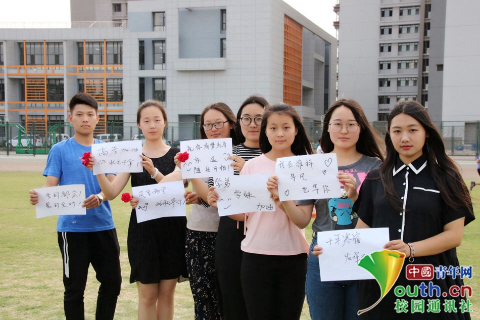 山东一高校师生为高考助力:愿高考加油 状元你拿