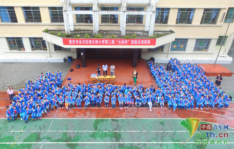 小朋友们乖巧的坐在座位上,无人机协会的同学操控带有摄像头的无人机为大家照大合照。中国青年网通讯员 朱睿 摄