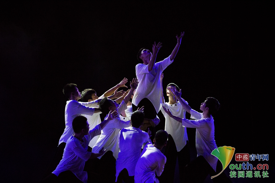 群舞《自由》有舞蹈团的男生们演绎,舞蹈的柔与刚在他们身上体现。中国青年网通讯员 陈愉程 摄