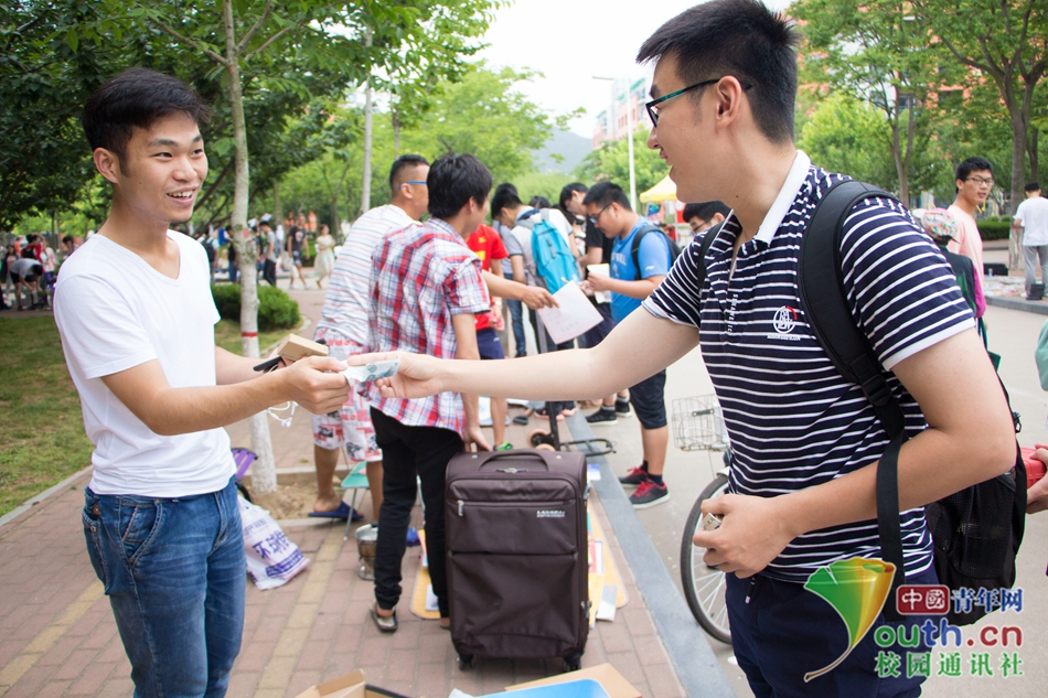 一手交钱一手交货,毕业生的物品得到了二次利用,在校生也能低价够到心怡物品,双方都很开心。中国青年网通讯员 连文博 摄