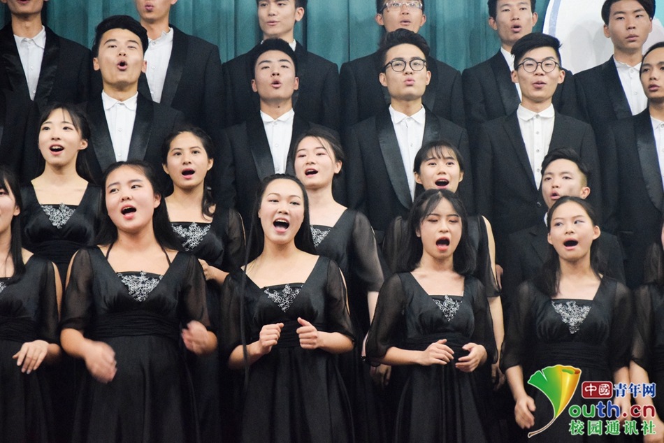 混声合唱《感觉身体被掏空》,诙谐幽默的歌词混合正统的演唱技法发生了神奇的化学反应,可谓引人入胜。中国青年网 通讯员李佳 摄