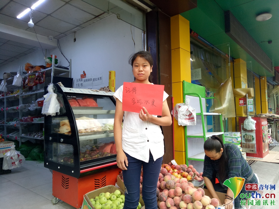 水果摊姐姐:毕业快乐,愿未来的你像水果一样甜甜蜜蜜,多彩缤纷,还有,记得多吃水果。 中国青年网通讯员 张鑫瑞 提供