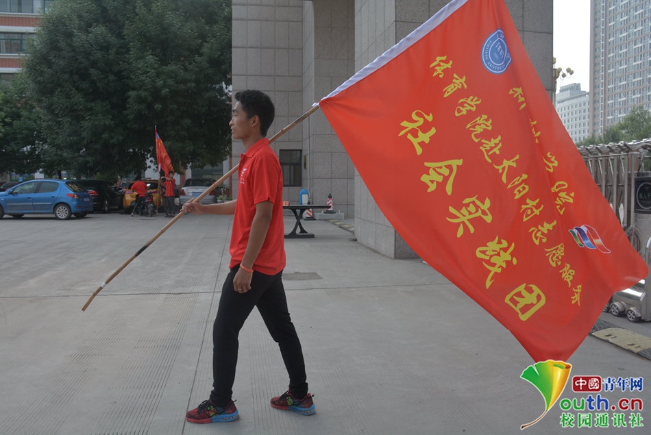 红色的实践团旗和红色的实践团服相互呼应,背着的是实践的责任,身着的是实践的态度。 “世界第一村”太阳村是一个集中代养代教在押服刑人员未成年子女的民间公益慈善组织机构。赴河南省新乡市太阳村支教服务团队以弘扬人道主义精神为宗旨,关爱呵护鼓励因父母服刑而无人抚养的未成年孩子,使之体会到他们和其他孩子一样,在祖国的同一蓝天下健康、幸福成长。中国青年网通讯员 陈真真 提供