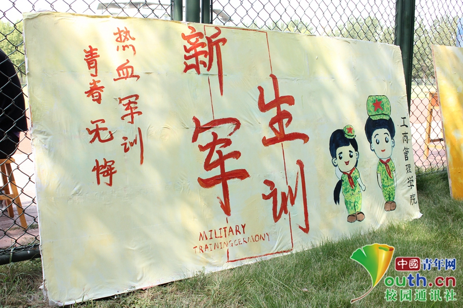 青春无悔,热血军训,学哥学姐为你们加油。中国青年网通讯员王平提供