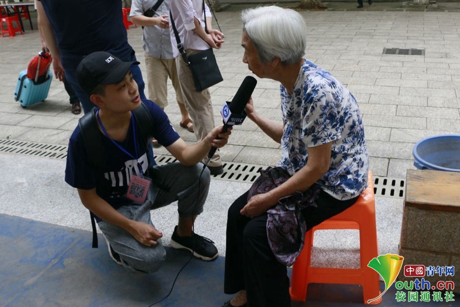 这位奶奶不惧路途遥远送孙子报道,校园小记者特意赶来采访。中国青年网通讯员 李灵芝 摄