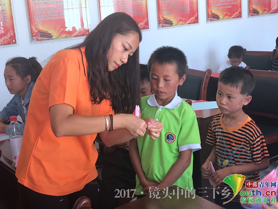 手工课,孩子们把自己的愿望,折成一只只千纸鹤,放飞自己的梦想。中国青年网通讯员 杨浩 摄