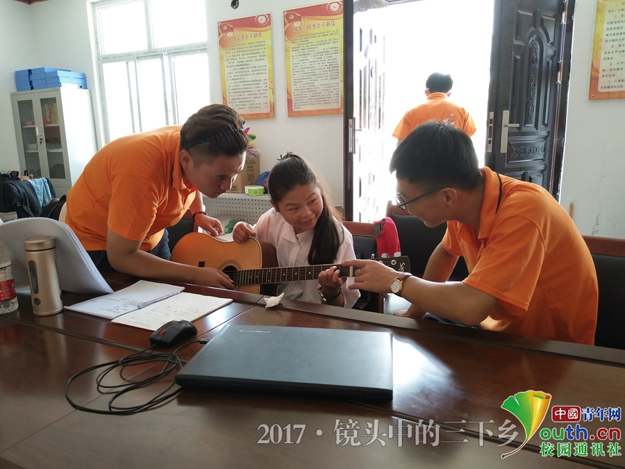 吉他的魅力,在这个小姑娘的心中燃起了火焰,让她爱上了音乐。中国青年网通讯员 杨浩 摄