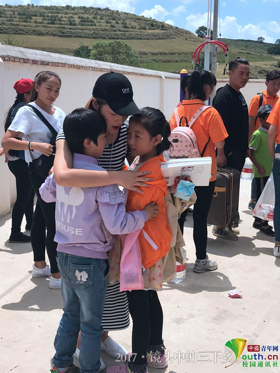 离别时,队员与孩子紧紧相拥,叮嘱他们好好学习。中国青年网通讯员 杨浩 摄