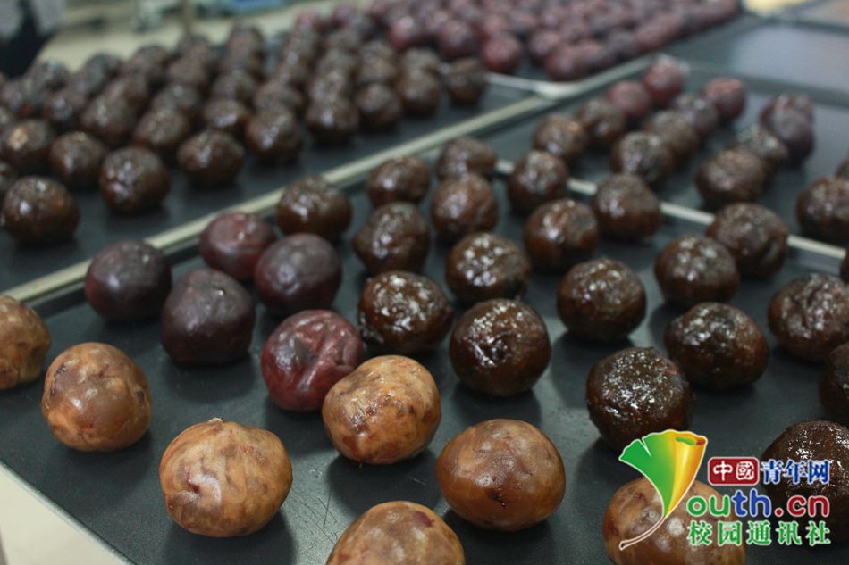 将准备好的月饼馅儿和月饼皮分成需要的份数,皮和馅的比例为2:8。中国青年网通讯员 王紫莹 摄