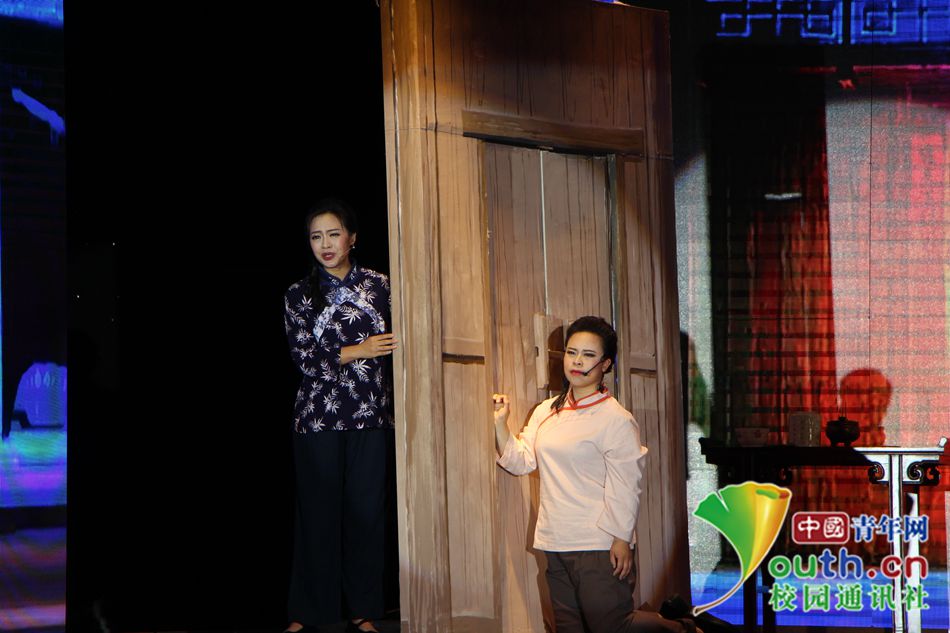 玉梅站在门外劝说桂英,将桂英心中熄灭的革命之火重新点燃。中国青年网通讯员 马寅聪 摄