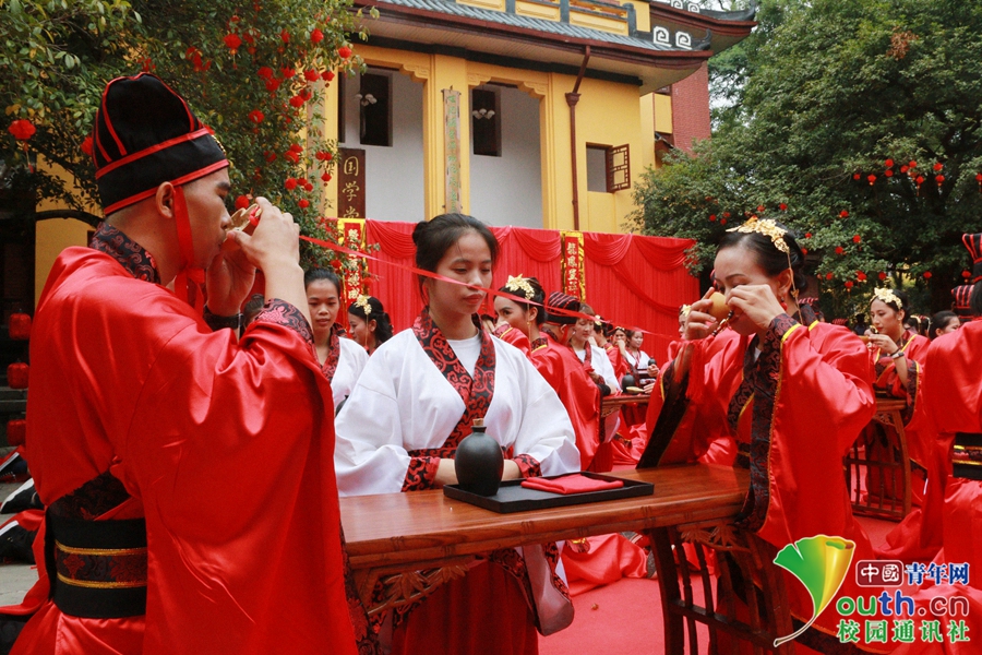 桂林一高校举行汉服集体婚礼 还原千年前的汉式礼仪