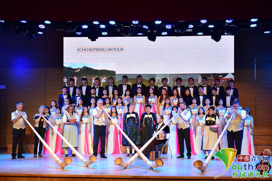 瑞士代表团和音乐学院同台演绎瑞士歌曲《高山之巅》,现场气氛极为热烈融洽。曲终之时,台下观众爆出经久不息的掌声,将交流活动推向了高潮。中国青年网通讯员 程晓琳 提供