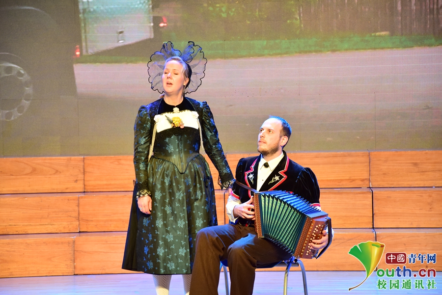 二重唱《沙河塞皮》。悠扬的歌声仿佛让现场的观众来到了阿尔卑斯山脚下的田园,尽情享受着舒适的田园生活。 中国青年网通讯员程晓琳 提供