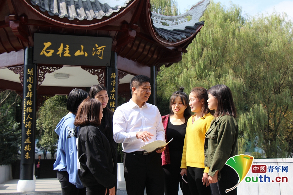 图为杨尚松在课余时间与学生交流。中国青年网记者 李华锡 摄