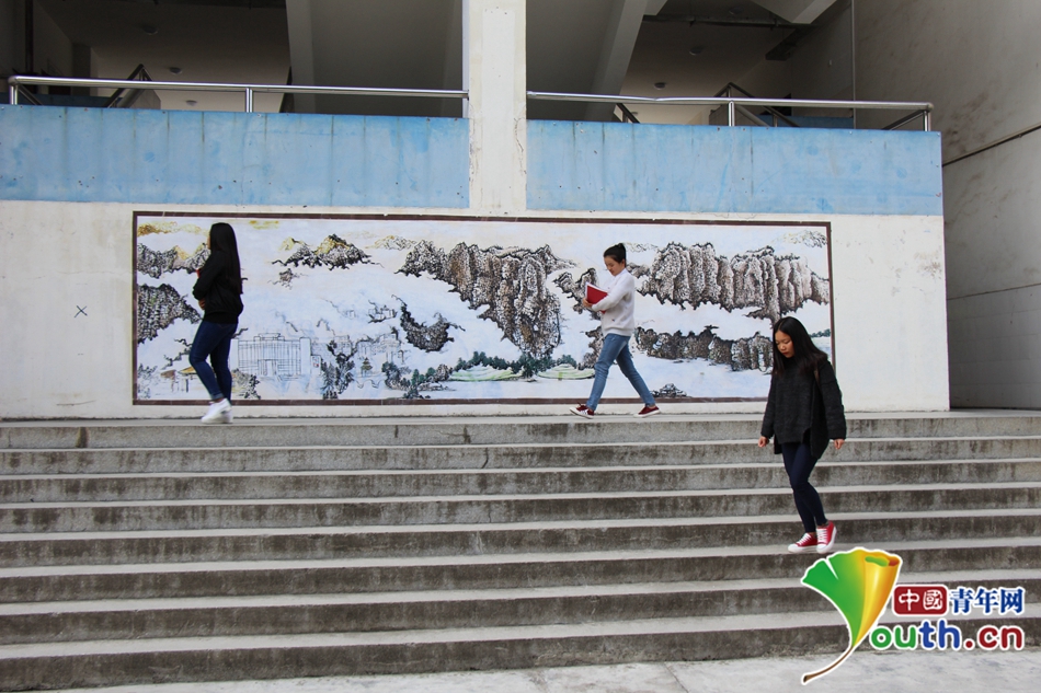 图为学生们绘制的墙绘。中国青年网记者 李华锡 摄
