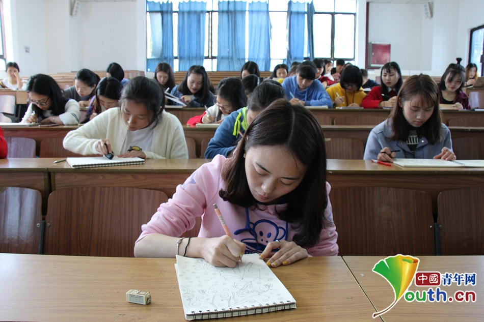图为学生在进行绘画。中国青年网记者 李华锡 摄