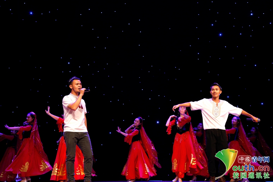 金融学院以一首耳熟能详的新疆民歌《掀起你的盖头来》在现场掀起热潮,仿佛将人拉入与心上人独处的那段时光。中国青年网通讯员 周晗逸 提供