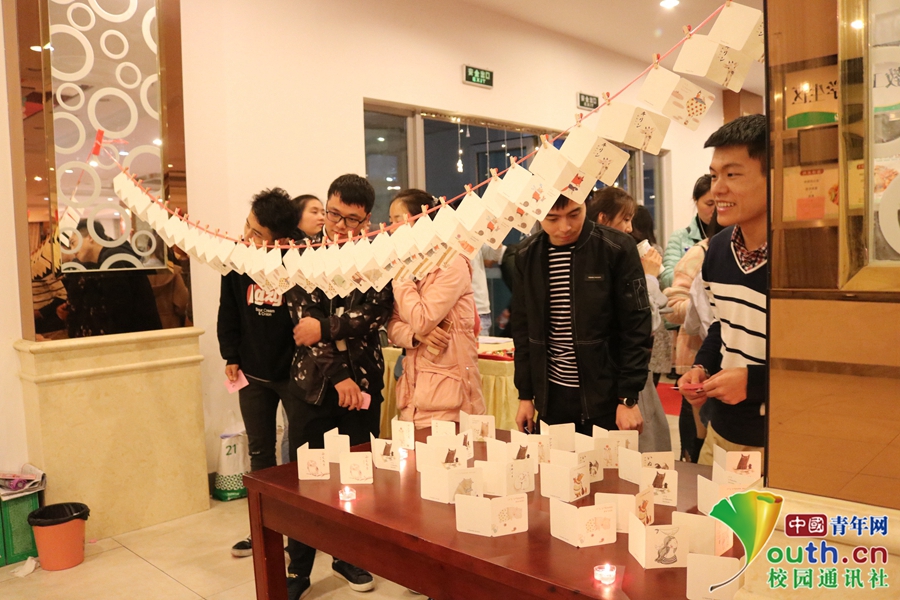 男孩女孩们通过卡片上的“爱情密语”,来选择自己的另一半。中国青年网通讯员 曾宣烨 摄