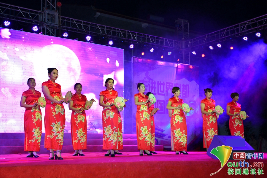 白腊园村舞蹈队带来的旗袍扇子秀《枉凝眉》。当诗词与歌曲融合,当旗袍与扇子齐舞,中华文化的曼妙将在表演中不言而喻。中国青年网通讯员 程晓琳 提供