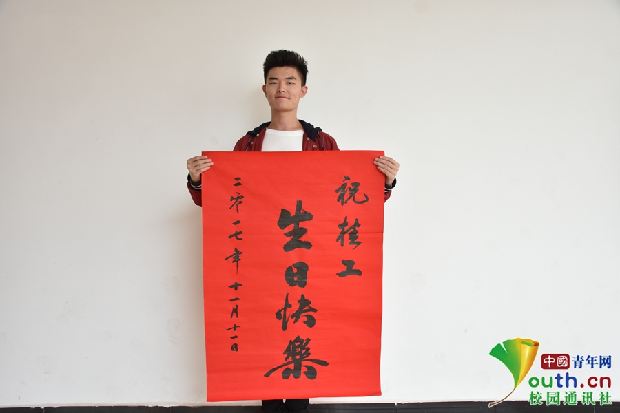 甲子又一岁,书法协会的同学挥毫写下祝福。中国青年网通讯员 程定杰 摄