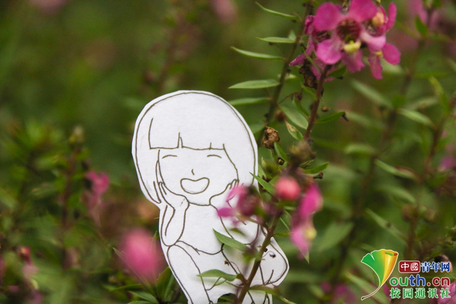 低头看见一种不知名的花,淡淡的紫色,小小的,像一串串的小铃铛。边走路边哼着歌,单身也不寂寞。中国青年网通讯员 晏杰 摄